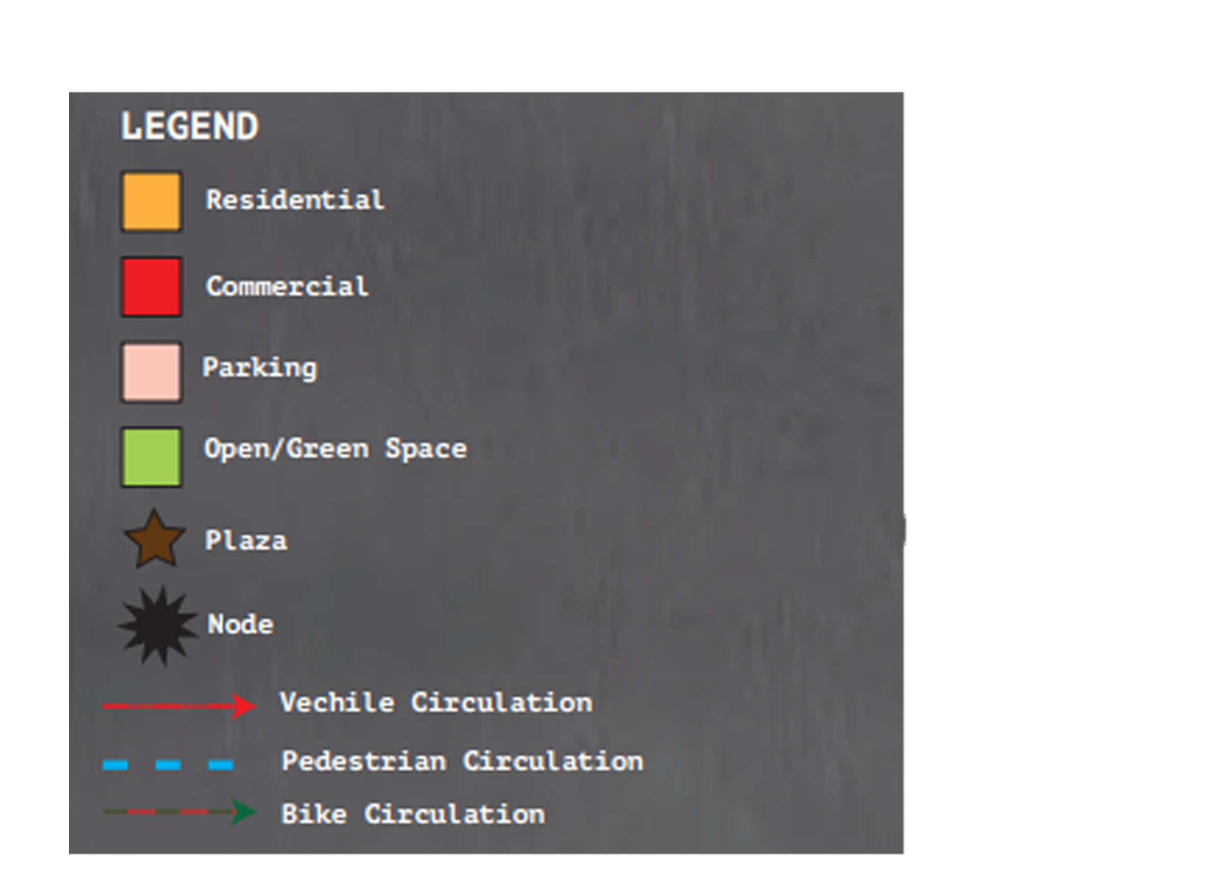 Through the coordination of mixed use, hardscape, and open spaces, a sense of community is promoted and linkages and continuity is established. Active modes of transportation will be highlighted and emphasized.